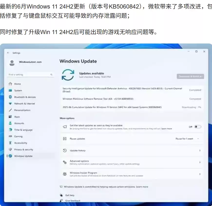 而在时间没隔多久的6月份,微软还被爆出 Win11 24H2 用户安装更新(KB5060842)后,会带来内存泄漏等问题。