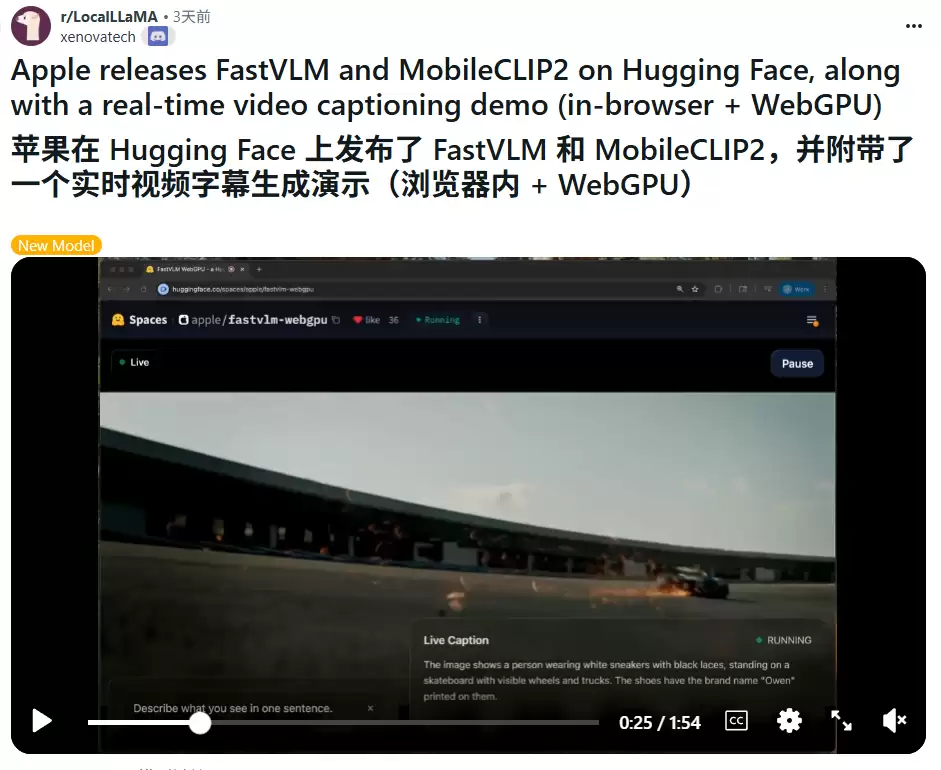 「FastVLM 能做到高效又准确的图像文本处理,速度和精度都比同类模型更出色。」 —— r/apple