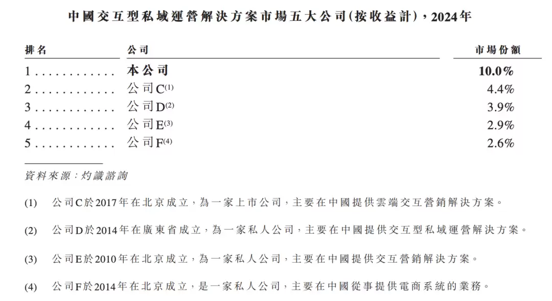 以2024年营收计,小鹅通在中国交互型私域运营解决方案市场的份额为10%,虽然与行业第二名4.4%的市场份额相比有一定优势,但仍未形成绝对的垄断优势。