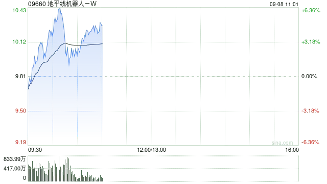 地平线机器人-W(09660)盘中涨超6%,高见10.49港元,创上市新高,截至发稿,股价上涨4.38%,报10.24港元,成交额30.65亿港元。