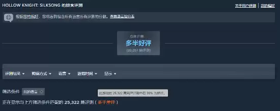 空洞骑士:丝之歌这款以类银河战士恶魔城玩法为核心的作品,已经正式上线多日。不过,游戏上线后却遭遇了不少玩家的批评,吐槽内容主要集中在翻译质量以及游戏难度等方面。受此影响,其在Steam平台上的玩家评价持续下滑。