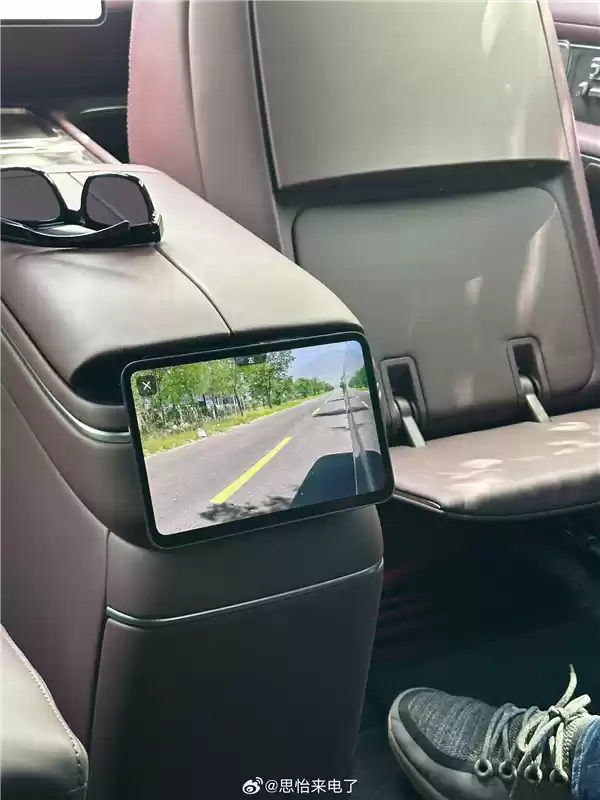 据介绍,当车辆后排乘客解开安全带时,后排屏幕会立即显示对应侧后方车门的盲区影像。从图片可以看到,该影像清晰呈现车后方路况,有助于乘客判断开门是否安全,有效降低因突然开门引发的事故风险。