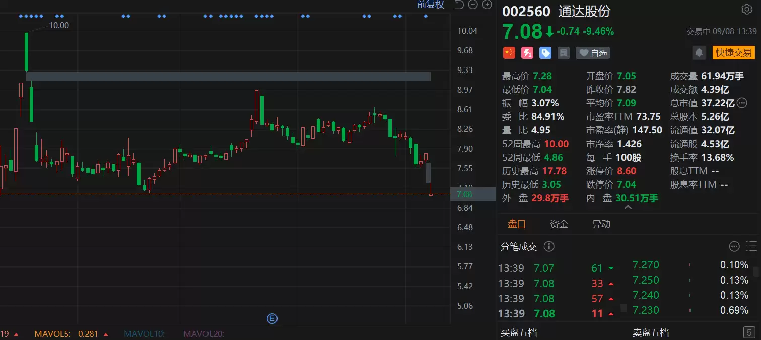 A股异动丨通达股份盘中跌停 董事长、总经理等4人被警示