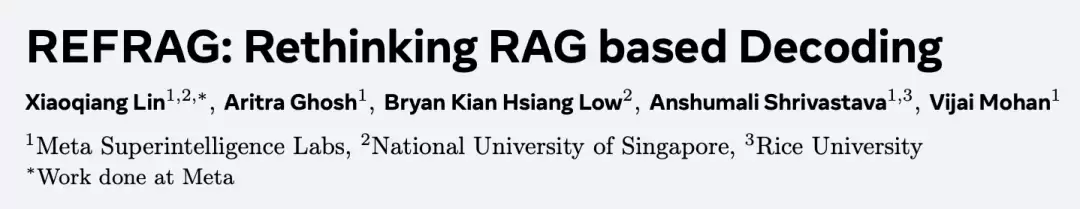 提出了一个名为REFRAG的高效解码框架,重新定义了RAG(检索增强生成),最高可将首字生成延迟(TTFT)加速30倍。