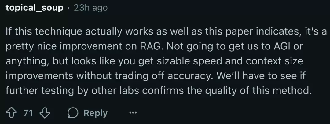 若效果真如研究所说的那样,那对RAG来说是相当不错的改进,看起来可以做到在不牺牲准确性的情况下,能显著提高速度和上下文大小。