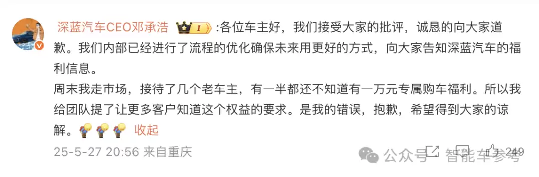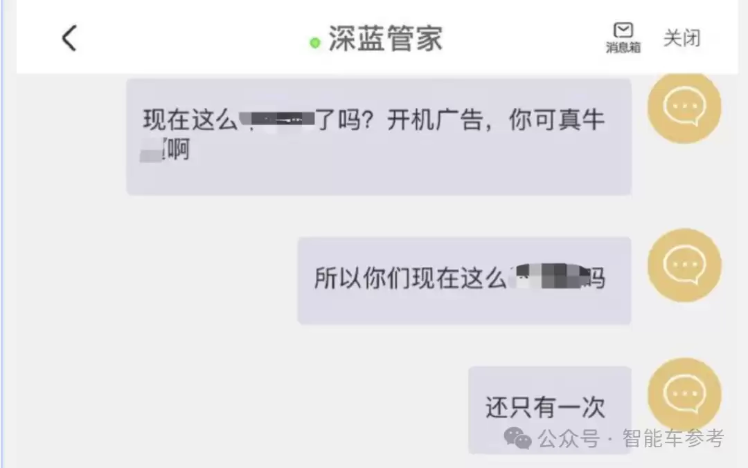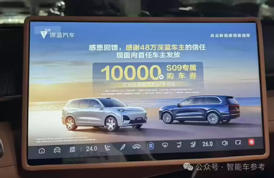 或许是预感到了S09的销量表现,深蓝在时任品牌CEO邓承浩的授意下,给深蓝老车主们推送了车机广告。