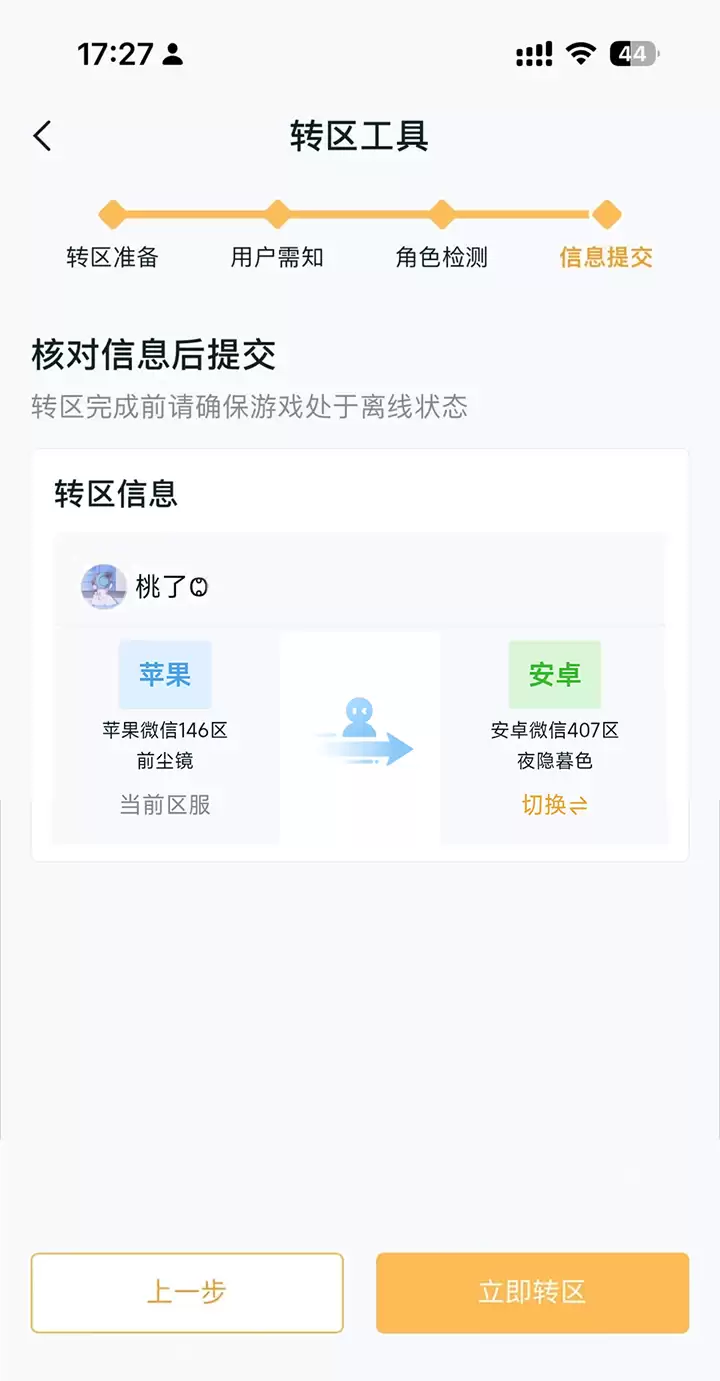 6、检测完成后,依提示进行操作提交信息等待转移成功即可。