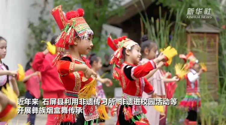 发源于云南省红河哈尼族彝族自治州石屏县的彝族烟盒舞,于2006年被列入首批国家级非物质文化遗产代表性项目名录。这项舞蹈起源于彝族先民的生产生活,长期以来在石屏民间广泛流传,深受群众喜爱。