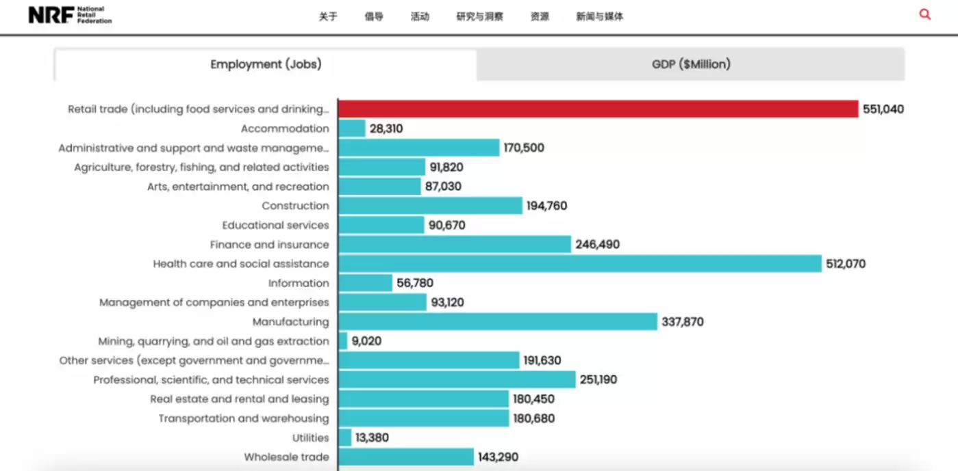 明尼苏达州零售业对GDP的影响、企业数量和就业人数等具体数据