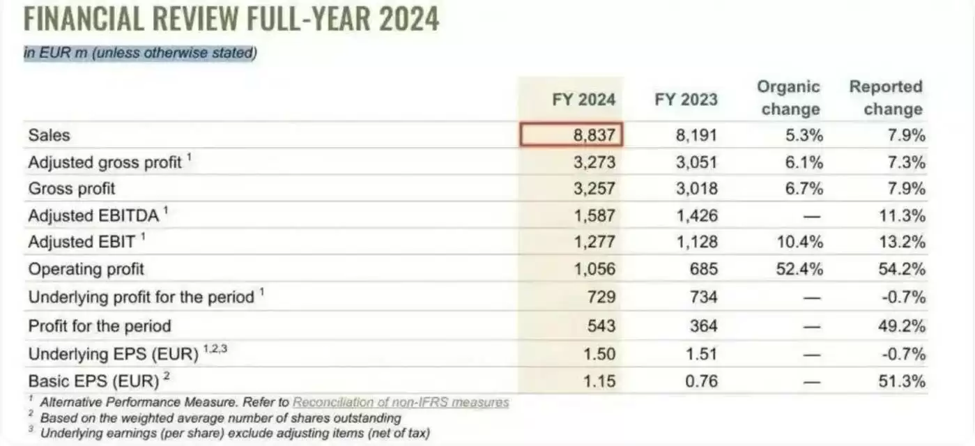 JDE Peet's 2024年报显示,皮爷咖啡中国市场表现亮眼,调整后息税前利润增长23.8%,直接拉动母公司全球销售额达88.37亿欧元(约736亿人民币),同比增长7.9%,这意味着皮爷咖啡仍是母公司的重要增长引擎。