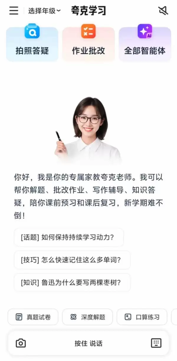 夸克旗下AI教育应用“夸克学习”APP已于近日在全网上线,定位每个家庭的免费家教,帮学生对一对一解决各种学习问题。