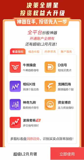 新客、VIP专属全新升级:超20款智能工具开户即享,超级LEVEL2及时刷新