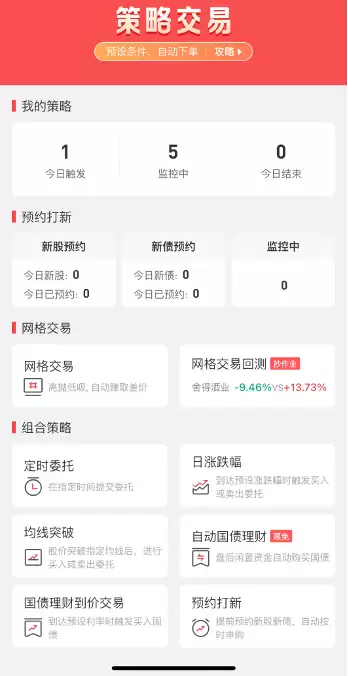 在震荡行情中,“网格交易”也是好帮手。该工具支持回测模拟,无论普通账户与信用账户皆可设置。除此之外,还特别融入“网格大师”策略,降低客户使用门槛,预设价格区间和网格间距,系统便会自动高卖低买、反复交易,降低时间成本,提升投资效率。