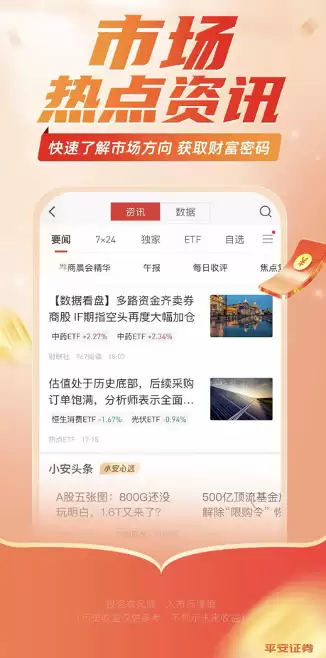 立足于"有温度的证券平台服务商"的战略定位,平安证券持续打造行业领先的股、基、债智能化投资服务平台,聚合帮助用户快速捕捉市场脉动,为不同投资者提供差异化、多元化、贯穿整个投资旅程的陪伴式服务。展望未来,平安证券APP将持续深耕智能化、自助化服务领域,坚持“综合金融服务、专业品质、科技赋能”的三大战略,始终坚持“以客户为中心”的“三省”服务理念,聆听客户需求,不断升级客户体验,用专业为客户创造价值。