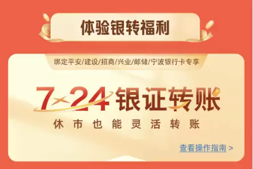 7×24小时银证转账:覆盖率达55%,支持六大银行,非交易时段“想转就转”