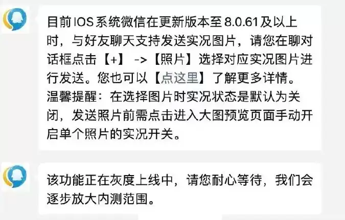 今年7月,有苹果用户发现微信聊天能发实况照片:之前一直吐槽不能发实况,这次终于可以了,微信还是听劝的。