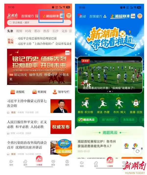 湖南人看湘超、策湘超、玩湘超,就来新湖南客户端。9月2日,湖南日报社倾情打造的“湘超”频道在新湖南客户端燃情上线,作为赛事合作平台,频道囊括赛程·积分榜、球迷·热梗、市州·烽火、直播·回放等几大板块,以及湘超风云、超“湘视频”、话题PK等多个特色栏目,赛程、积分榜、直播、热梗一键尽享。
