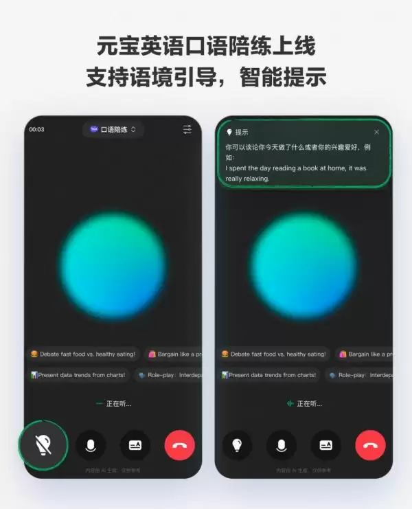 腾讯元宝上线AI口语陪练,人人都能免费练英语了