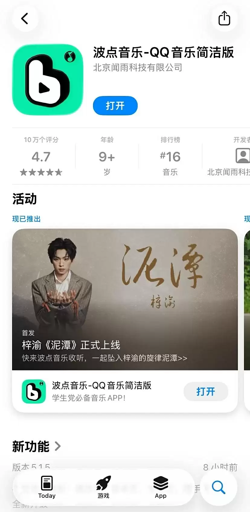 小编实测,目前苹果 App Store 商店显示,波点音乐 App 已显示后缀名称为 QQ 音乐简洁版。