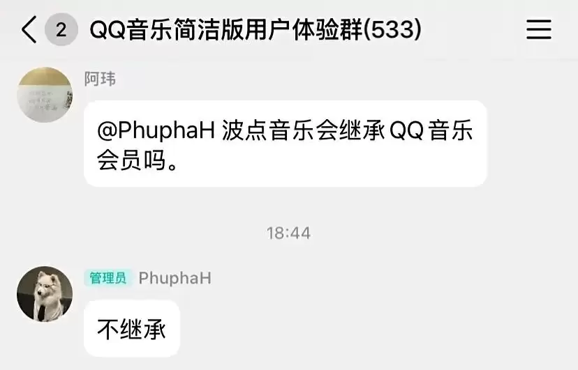 比较遗憾的是,虽然 QQ 音乐简洁版以波点音乐 App 服务回归,但会员服务并没有打通,QQ 音乐绿钻权益暂不支持在波点音乐使用。QQ 音乐简洁版用户体验群管理员也表示波点音乐并不继承 QQ 音乐的会员。