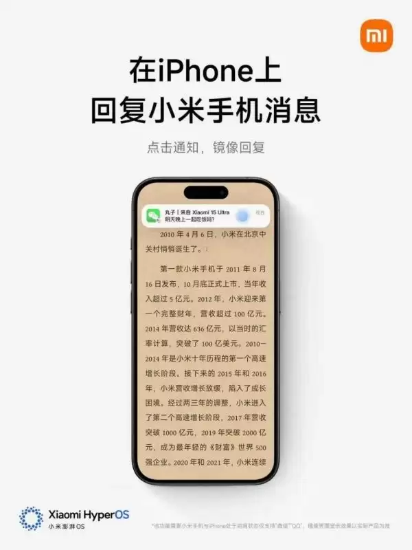 8月28日,小米正式发布小米澎湃OS 3,优化升级了多项系统化服务功能。此外,全面接入苹果生态,实现苹果设备和小米生态的操作打通。