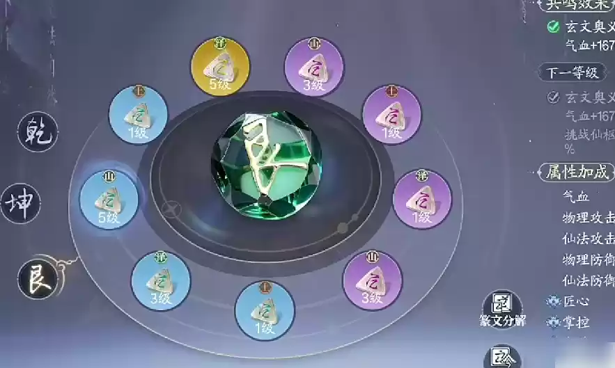 在游戏当中提升道法的手段总共有三种,第一种是直接提升自身的阵灵系统,阵灵可以通过抽卡来获取,每次抽卡获取一个新阵灵时,玩家的阵列系统,都会激活一个战斗力提升单位,不同的阵灵组合,会触发不同的攻击效果提升,例如,当玩家触发了情缘效果,可以提升整体的攻击力数值,以及气血数值。