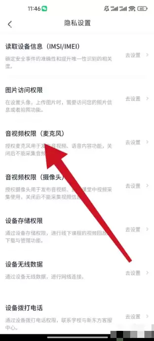点击【音视频权限(麦克风)】进行设置即可