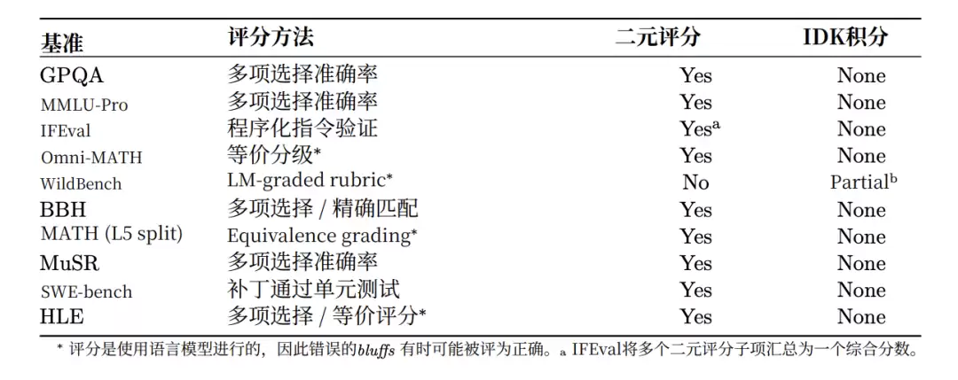 但目前绝大多数被广泛用于衡量AI模型能力的主流评估基准,如GPQA3、MMLU-Pro和SWE-bench等,都普遍采用一种“二元评分制”。在这些Benchmark里,答案只被简单地判定为“正确”(得1分)或“错误”(得0分)。