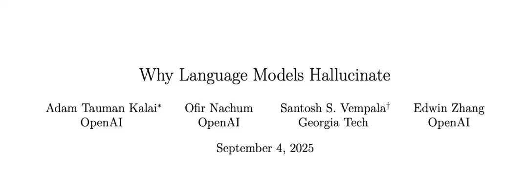 9月4日,OpenAI 久违的发布了一篇论文《语言模型为何会产生幻觉》(Why Language Models Hallucinate)。