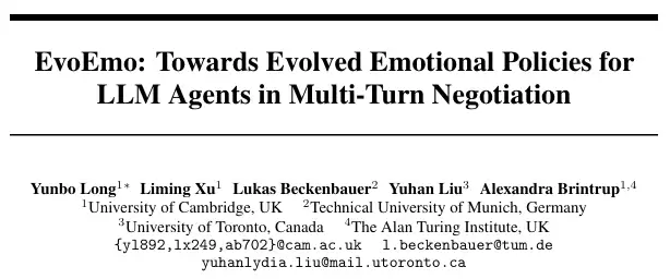 近日,剑桥大学团队及其合作者联合提出了一个名为“EvoEmo”的进化强化学习框架,为 LLM 补上了“情感谈判”这一短板。相关研究论文已发表在预印本 arXiv 上。