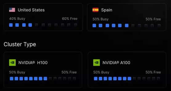 租用算力的客户端,可以通过选择既有的集群,或者创建自定义筛选条件的集群,来满足自身需求。例如,可以选择100%由绿色能源供应的算力集群,或者选择特定地区的算力资源以降低成本。