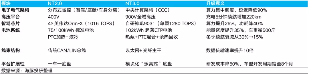 而此次升级的NT3.0平台,不仅在续航+快充纯电的核心痛点上进行了升级,同时在舒适性配置上也标配“冰箱彩电大沙发”,大幅改进NT2.0平台车型的定义失误问题。