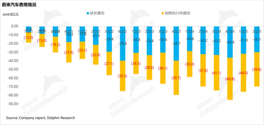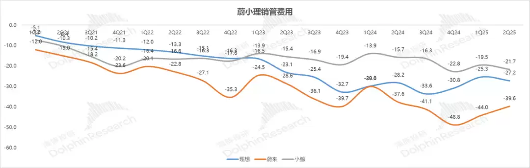 虽然仍高出理想和小鹏的销管费用,但是蔚来主要用高端服务+豪华的Nio house来塑造高端品牌感,这部分费用继续下调的空间不大。