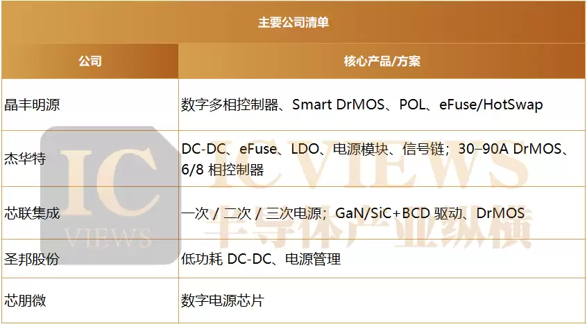 未来几年,随着AI 大模型向千亿参数、万亿级算力迈进,电源系统将面临更严苛的功率密度与能效挑战,这既意味着第三代半导体、智能电源管理等核心技术的竞争将进一步白热化,也为具备垂直整合能力的企业提供了弯道超车的机会。对于国产厂商而言,一方面需要持续深耕核心芯片的性能突破,在DrMOS、多相控制器等关键产品上缩小与国际巨头的差距;另一方面,通过并购整合完善产品线、绑定头部客户生态,将成为打开市场空间的关键。