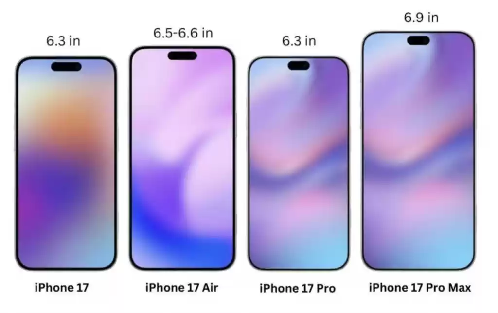 不仅超薄,17 Air 在屏幕尺寸也要更大一点:6.55 英寸,介于 Pro(6.3 英寸)和 Pro Max (6.9 英寸)之间。
