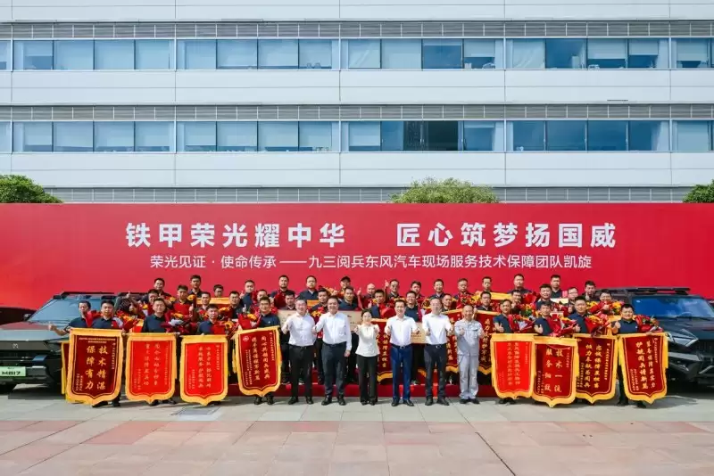 服务国之盛事,必备非常实力。九三阅兵不仅是对东风军车品质的一次大考,同样是对东风军品保障能力的一次检验。在纪念中国人民抗日战争暨世界反法西斯战争胜利80周年大会上,115辆东风军车以“零失误、零误差、零故障、零事故”再次彰显了“中国军车第一品牌”的实力与担当。东风汽车现场服务技术保障团队也以高标准、高质量、高水平完成任务,赢得阅兵联合指挥部、受阅官兵的一致好评,获得阅兵联合指挥部赠予“同心共铸阅兵盛典 携手再谱强军新篇”锦旗。