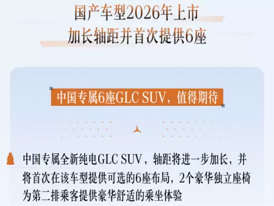 当然了,其实我觉得奔驰这次GLC EV难得开窍的地方就是,国产后不仅加长,还提供6座可选,这不仅解决了此前EQ系列与同名燃油车空间与价位不对等的缺陷,而且2+2+2的六座布局也比目前2+3+2的七座布局更适合多人乘坐,不过空间上也不能奢望太多,个人感觉最多也就是接近Model Y L的水平。