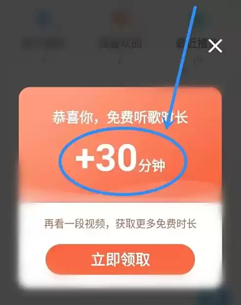 视频观看结束后,即可获得30分钟免费听歌时长。