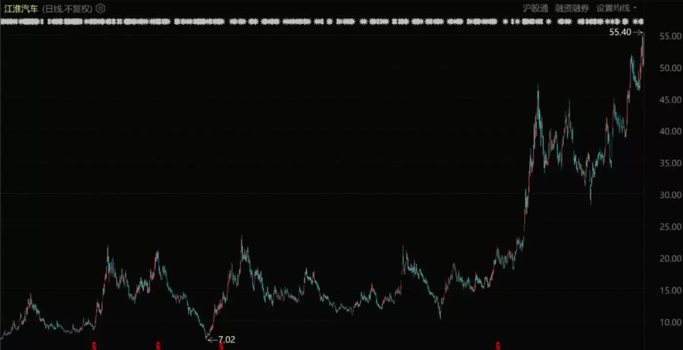 科技方面,葛卫东的关联人葛贵莲,新进入了华为汽车概念股江淮汽车前十大股东名单。自2024年初以来其股价表现就非常强势,近期又创下历史新高。