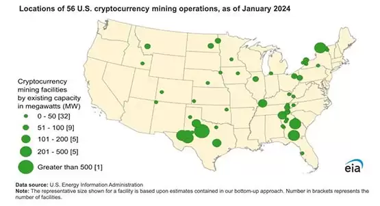 近三年来,不少大型比特币挖矿公司也在美国上市,并在德州、纽约州等能源丰富的地区设立挖矿设施。