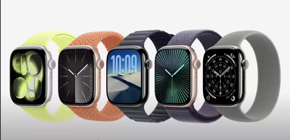 Series 11采用了峰值亮度 2000 nits的1.96英寸屏幕,轻薄度增加,号称是“系列最薄”Apple Watch,屏幕采用Ion-X玻璃,防刮性能提升两倍。Series 11的芯片更新为S10芯片,还支持5G网络。