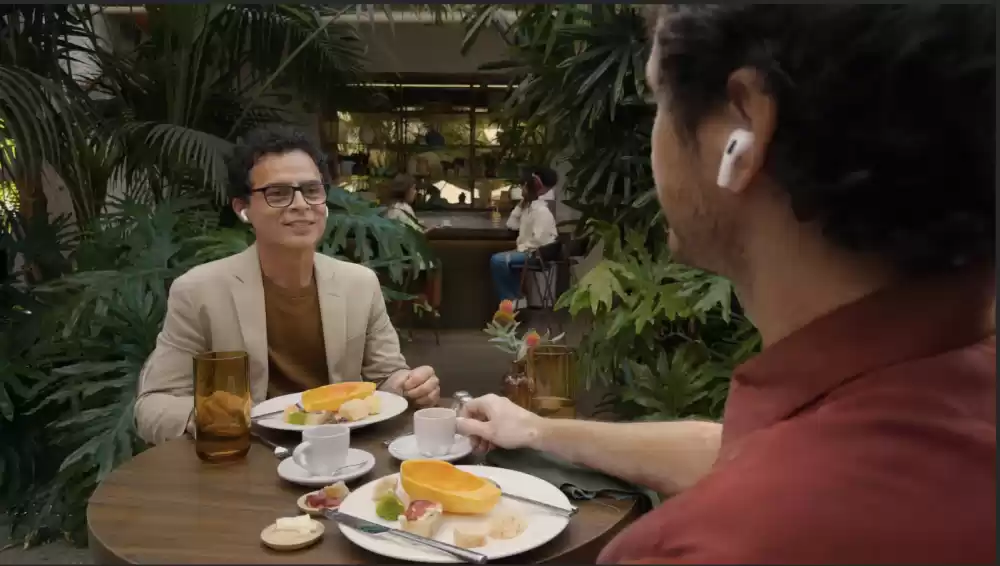 当双方都有AirPods Pro 3时,戴上耳机两个人就可以实现跨语种实时同传。