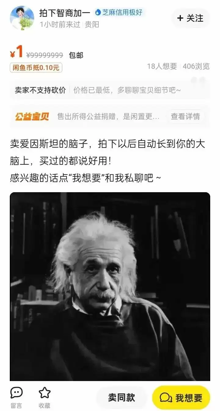 当你看到闲鱼上架了“爱因斯坦的脑子”,还有人声称“用过以后真的长脑子了”时,普通人可能会玩梗,但有一些焦虑的家长会忍不住琢磨:要不给咱孩子试试?