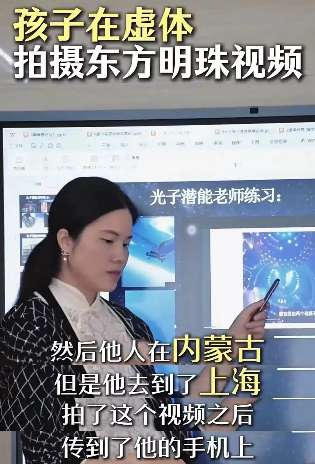 孩子人还在内蒙古,但是虚体已经去到了上海东方明珠,还拍摄了一段航拍角度的视频,直接经过一个“虚转实”的技术传到了手机上。