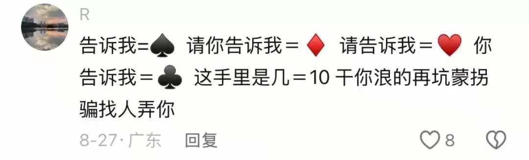 在提问孩子手中扑克牌花色的时候,用“告诉我这手里是几”、“请告诉我这手里是几”等不同的问法进行提示,孩子只要死记硬背住这些提示信息,就能准确地说出对应的花色。