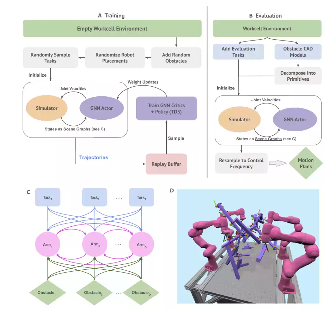 RoboBallet创新性地将图神经网络(GNN)用于强化学习,作为其策略网络和状态-动作价值估计,以解决多机器人(机械臂)协作运动规划中的复杂问题。