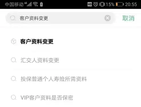 第二步,在搜索框输入“客户资料变更”搜索进入客户资料变更界面。