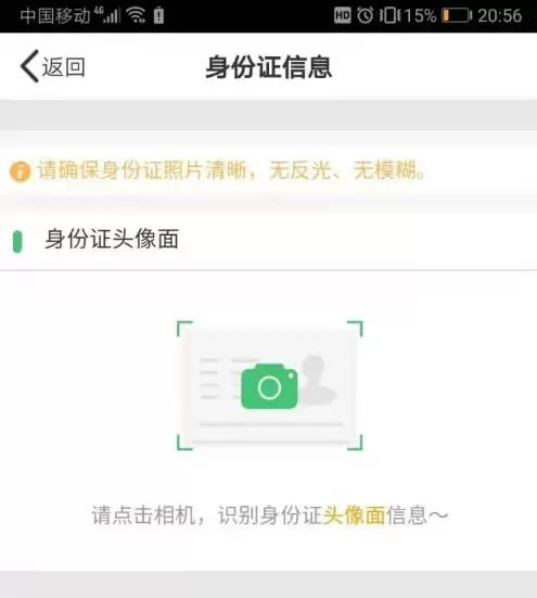 第四步,拍照上传个人身份证照片。一定要对准了拍,照片要清晰。上传后点击确定。