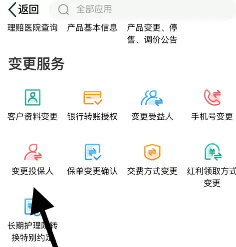 最后:选择界面中的“变更投保人”图标,即可完成操作。