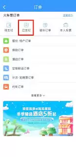 在订单页面中,找到你想要改签的车票订单。这里可以通过“已支付”“未出行”等条件筛选来快速定位。点击进入该订单详情页。